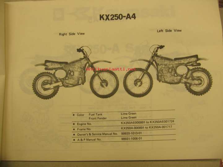 Kawasaki KX250-A Parts catalog varaosaluettelo