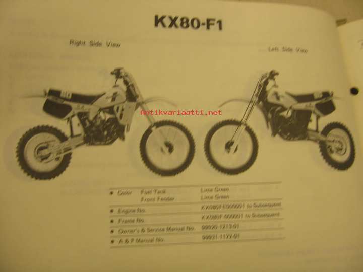 Kawasaki KX80-F ´83 parts catalogue varaosaluettelo