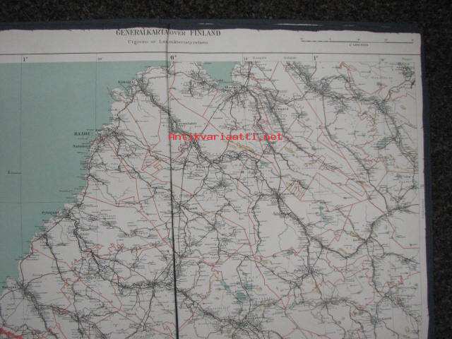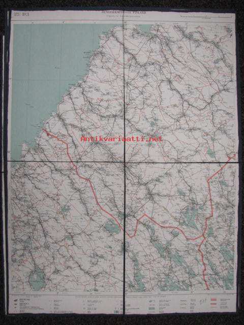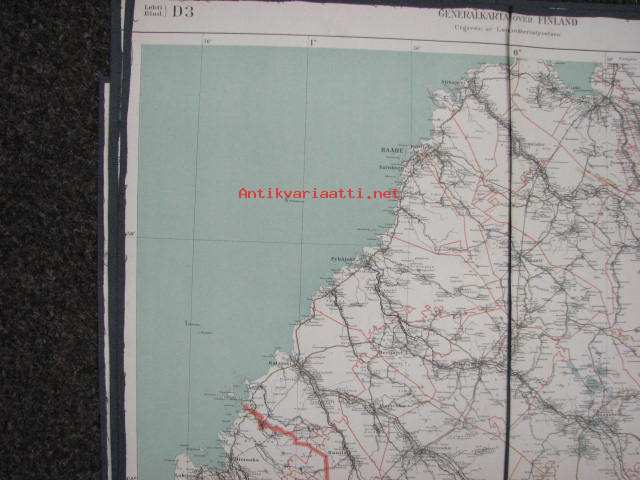 Lehti D4 Generalkarta öfver Finland, Raahe, 1941, kankaalle pohjustettu -kartta