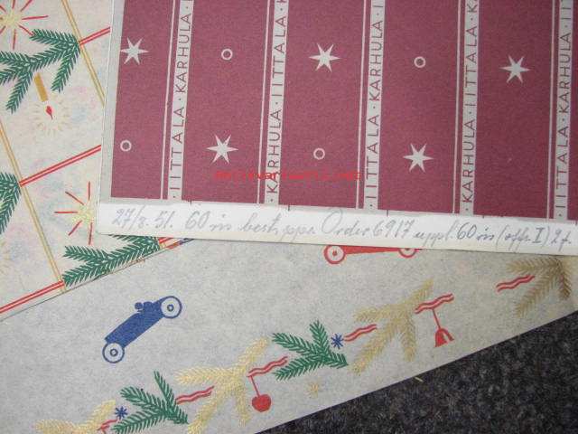 Joululahjojen käärepaperiarkki 1950-luvulta - Karhula-Iittala