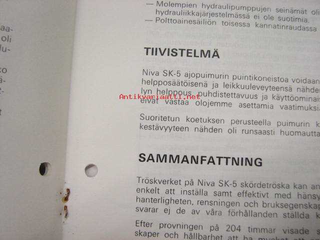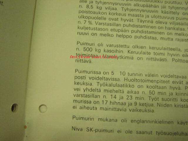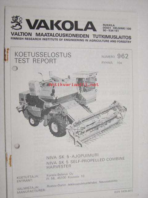 NIVA SK 5 ajopuimuri Vakola koetusselostus nr 962 1978