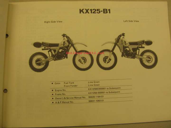 Kawasaki KX125-B ´82 parts catalog -varaosaluettelo