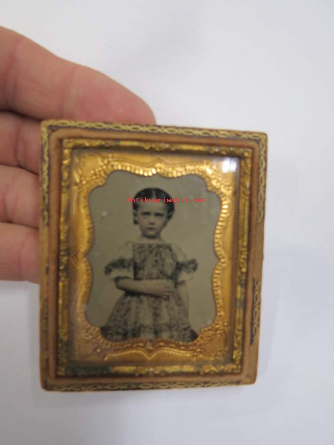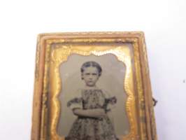 Tyttö - ambrotyyppi (ambrotype) -kehyksessä oleva valokuva noin 1850-1860 luvulta