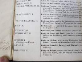 Karte von Europa im Jahre 1860 -Euroopan kartta, mukana tuolloisten "regenttien" eli hallitsijoiden luettelo
