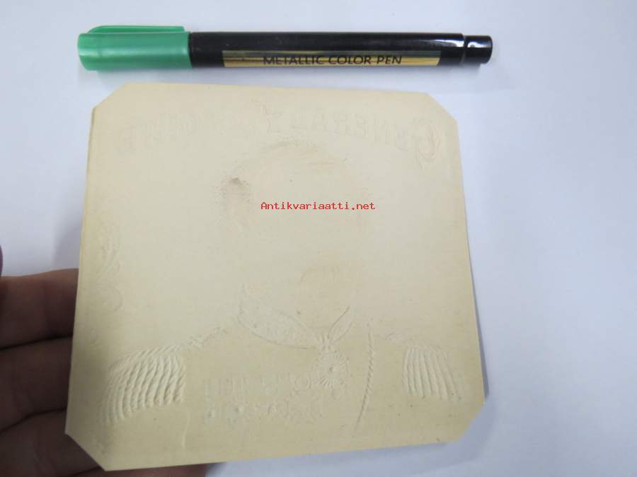 Arthur Donaldson -sikarietiketti, huomaa kohopainatus