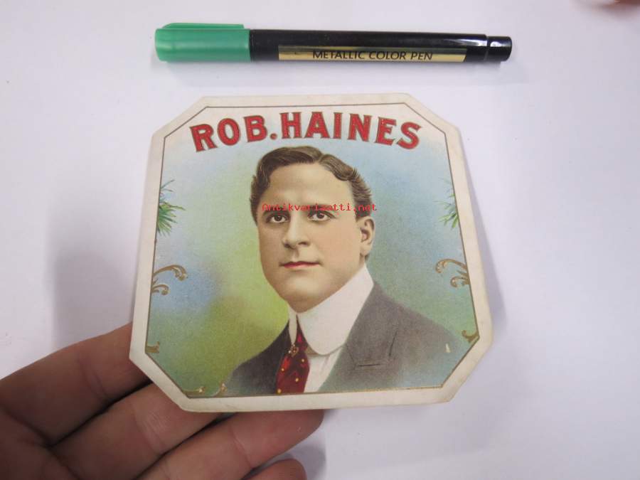 Rob. Haines -sikarietiketti, huomaa kohopainatus