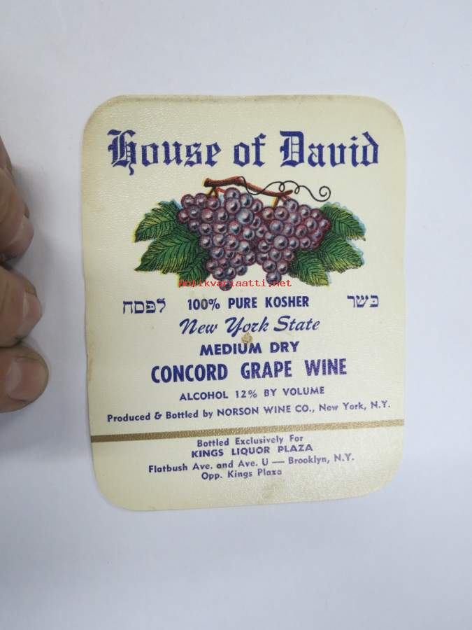 House of David New York State Concord Grape Wine - Kosher -viinietiketti, juutalaisen perinteen mukaista viiniä