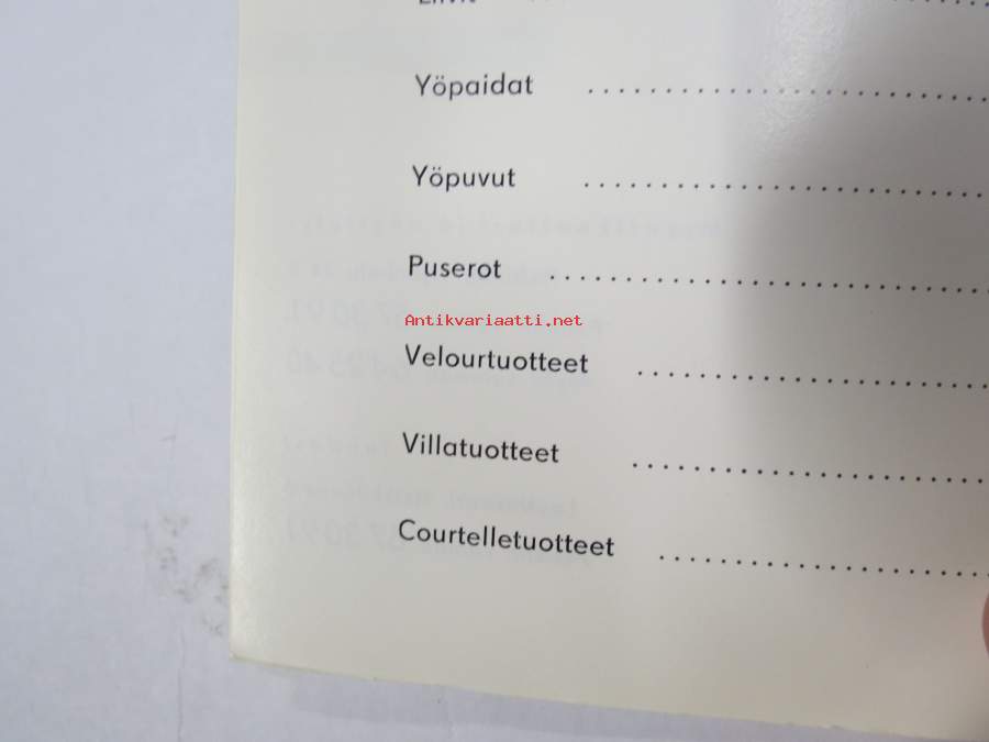 Tricol 1961 Keväthinnasto - kuvitettu vaatehinnasto