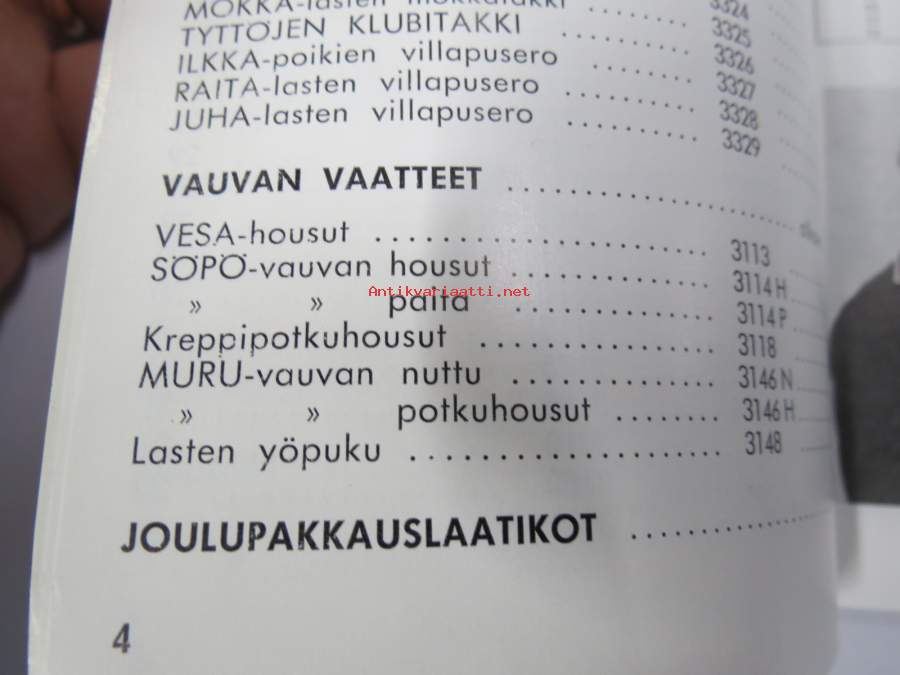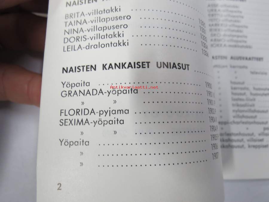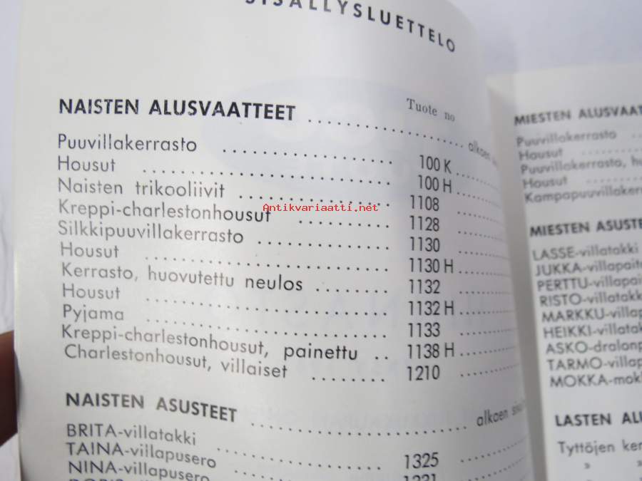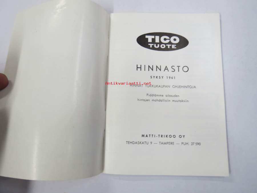 Tico syksy 1961 hinnasto - kuvitettu vaatehinnasto
