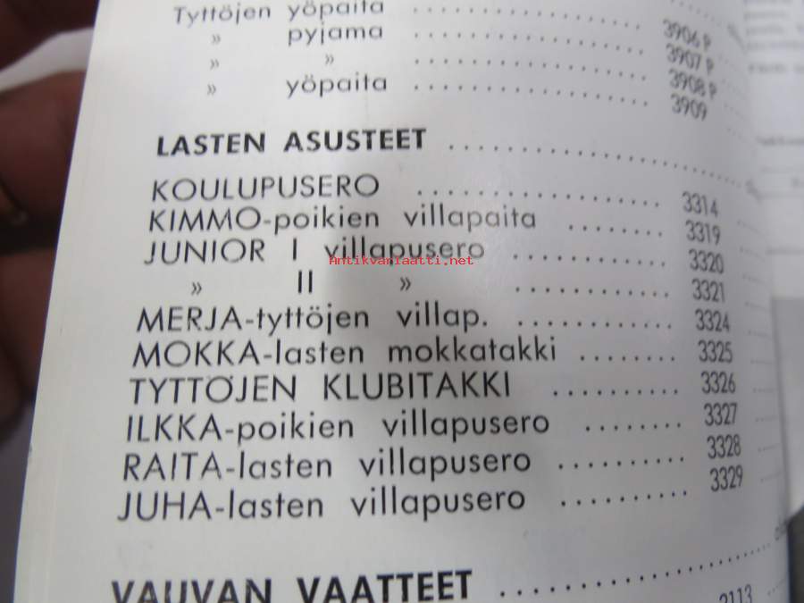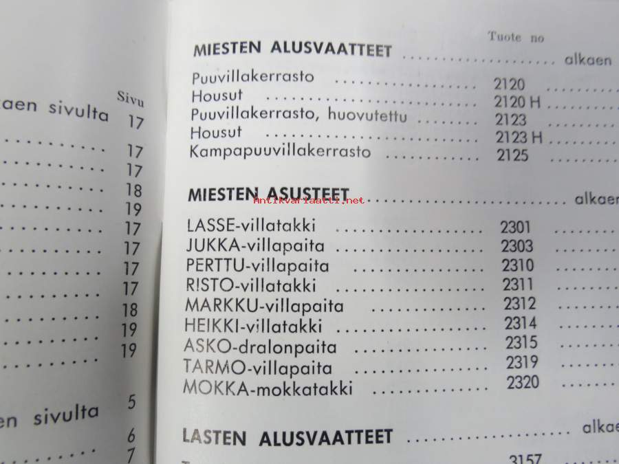 LH Tekstiili Oy hinnasto 1962 - kuvitettu vaatehinnasto