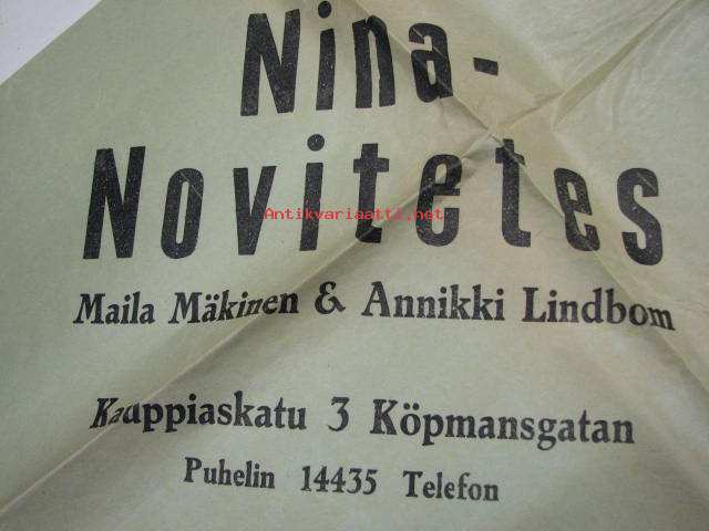 Nina Novitetes Maila Mäkinen & Annikki Lindbom -vaatekaupan paperipussi