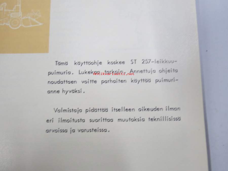 Volvo BM ST 257 -leikkuupuimuri, käyttöohjekirja (dieselmaoottori / kaasutinmoottori)
