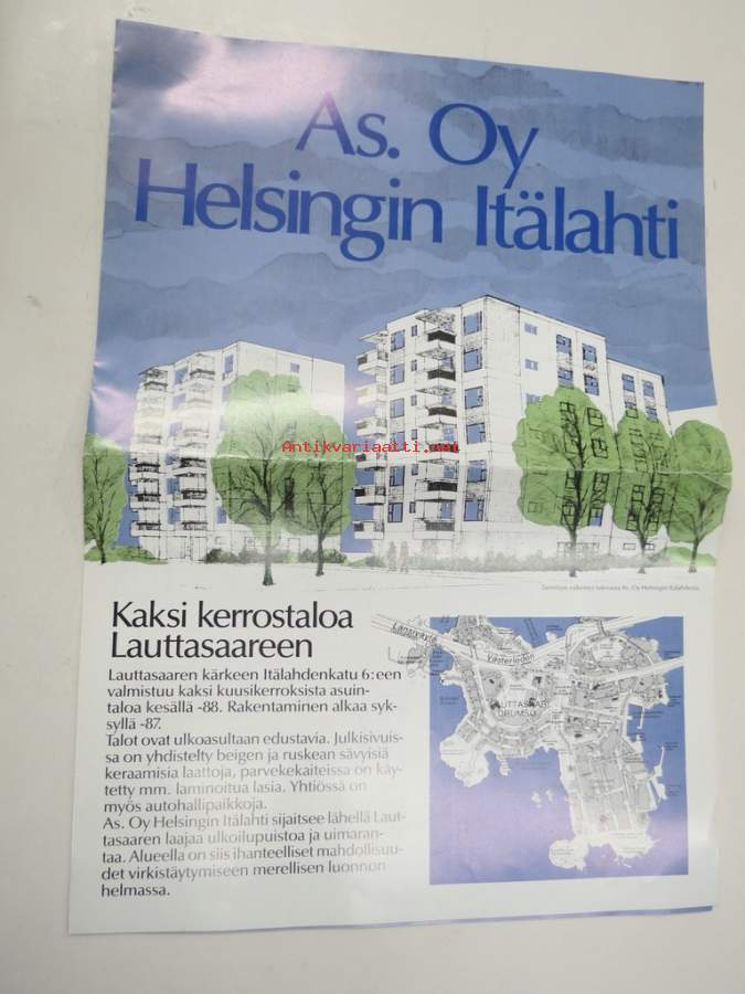 As. Oy Helsingin Itälahti - Itälahdenkatu 6, Lauttasaari, Helsinki -Rakennusliike A. Puolimatka & Kansallisosakepankki -myyntiesite v. 1987