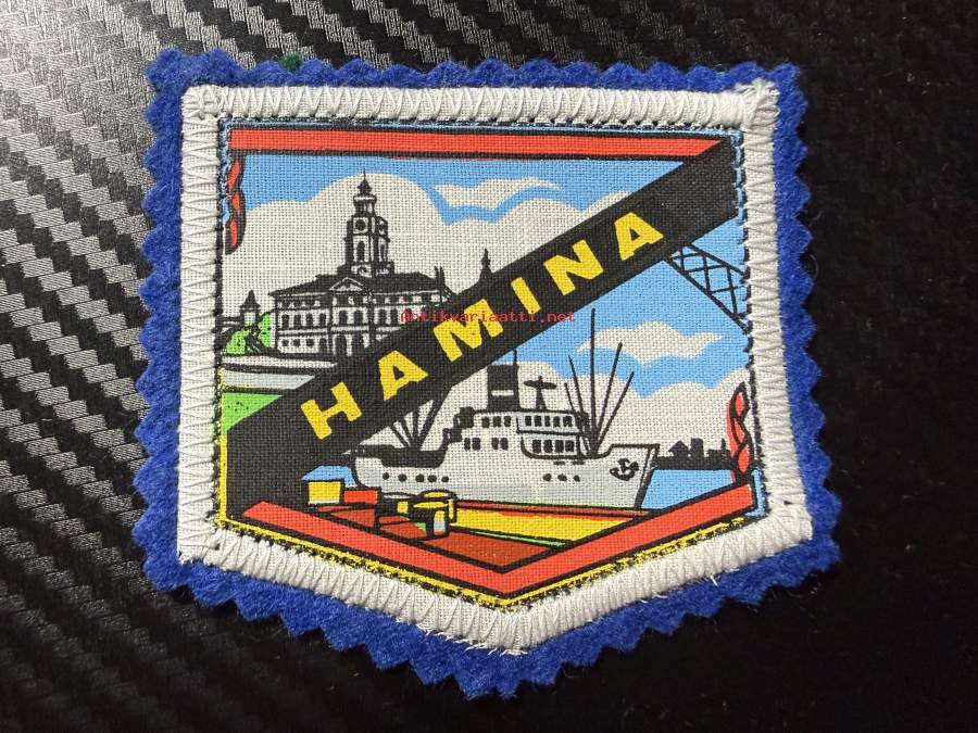 Hamina -kangasmerkki / matkailumerkki / hihamerkki / badge -pohjaväri sininen