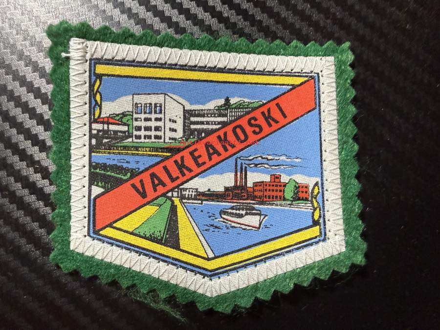 Valkeakoski -kangasmerkki / matkailumerkki / hihamerkki / badge -pohjaväri musta