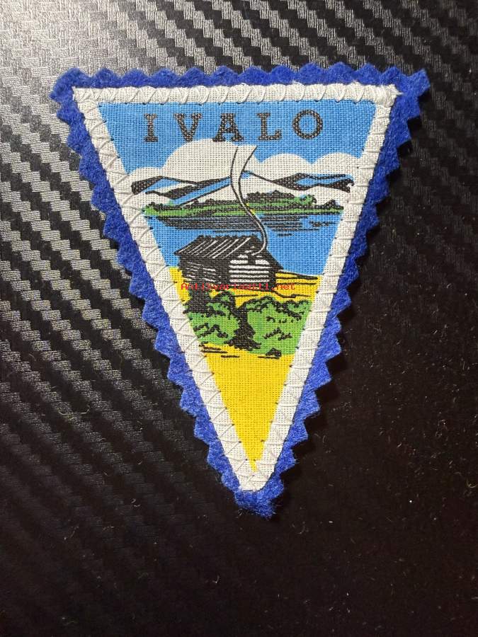 Ivalo -kangasmerkki / matkailumerkki / hihamerkki / badge -pohjaväri sininen