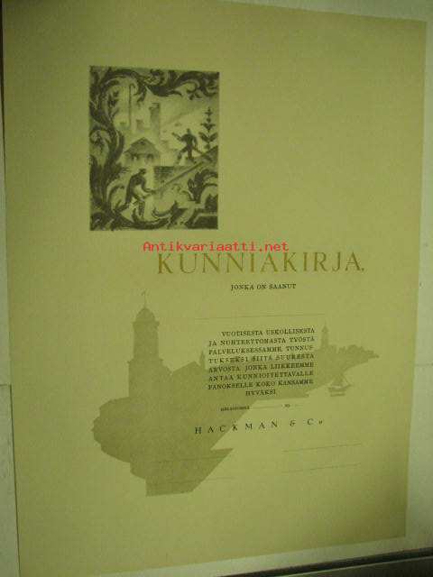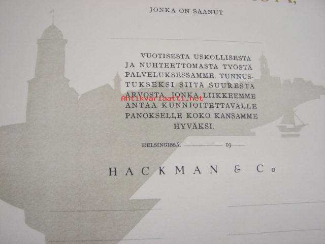 Hackman & Co -kunniakirja, kuvan piirtänyt Bruno Tuukkanen, käyttämätön