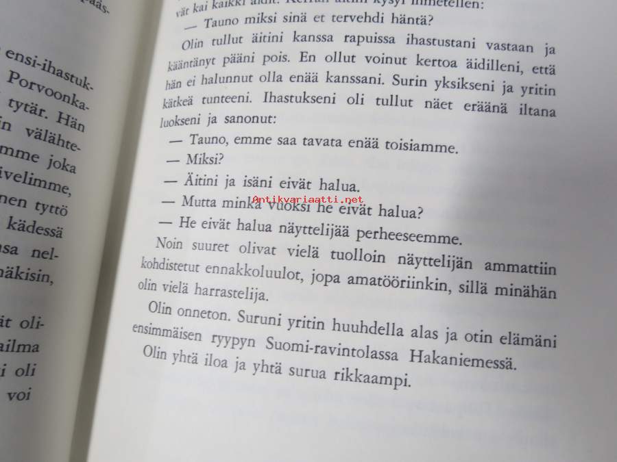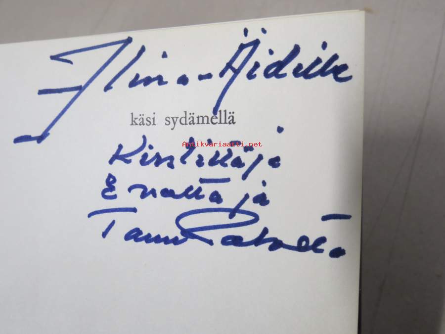 Muistelmateos, johon omisteen ja oman nimikirjoituksensa on tehnyt Tauno Palo itse; "Ilmi-Äidille Kirstiltä ja Evalta ja Tauno Palolta".
