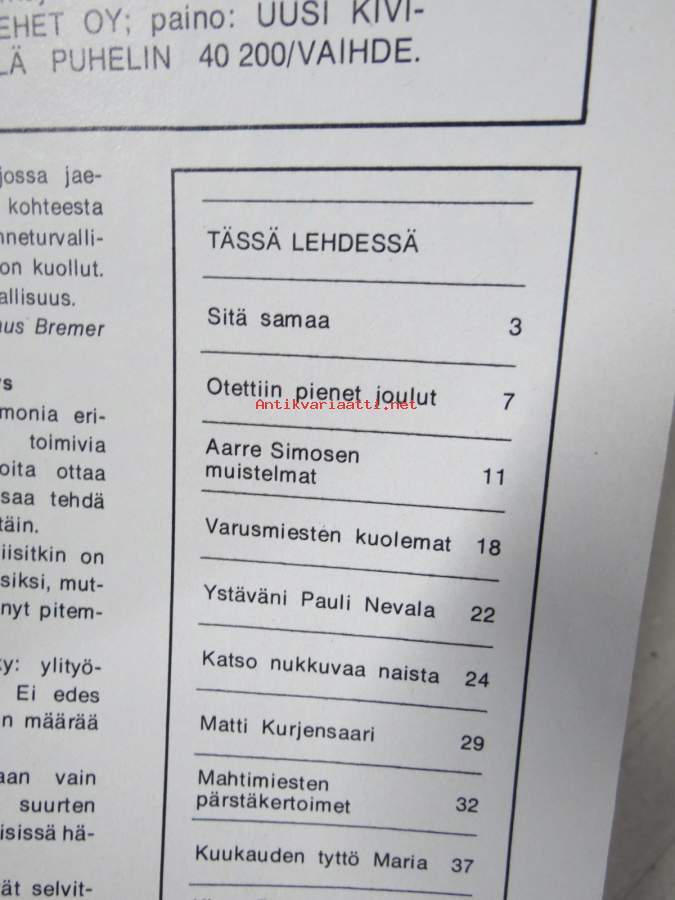 Vip 1971 nr 12, sis. mm. seur. artikkelit / kuvat / mainokset; Otettiin pienet joulut, Aarre Simosen muistelmat 1, Varusmiesten kuolemat lisääntyvät, Elämä