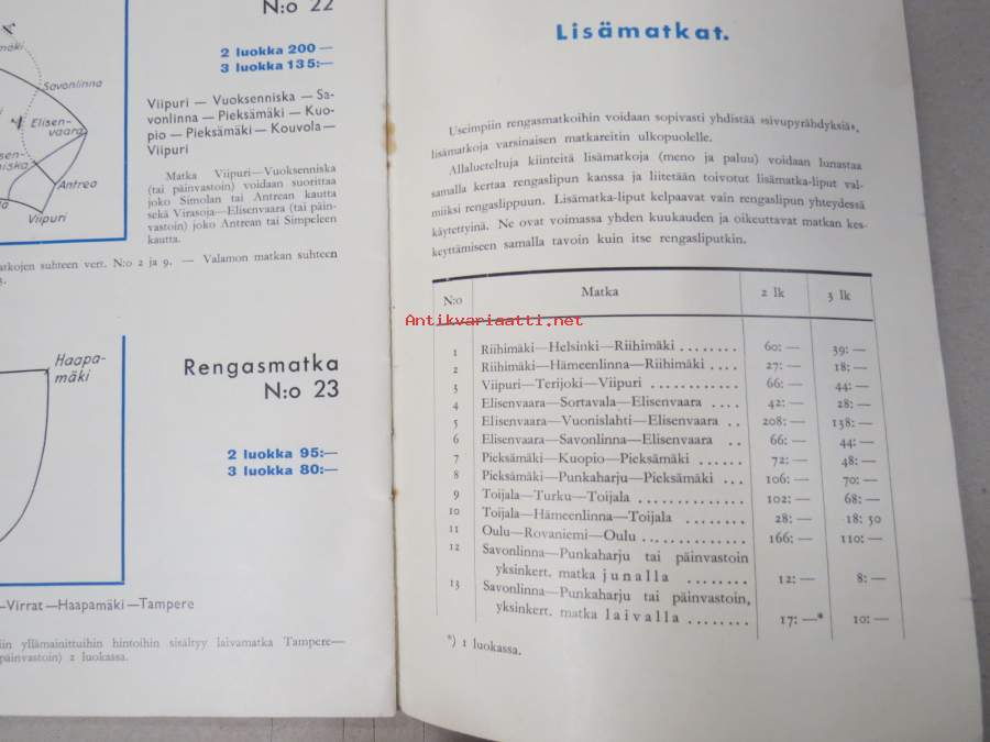 Rautateiden rengasmatkat 1939 -esite / railway roundtrips brochure
