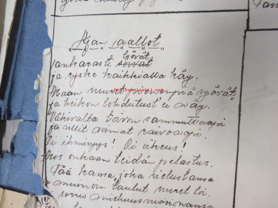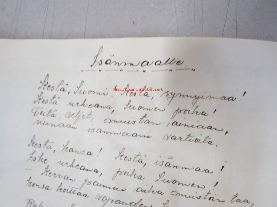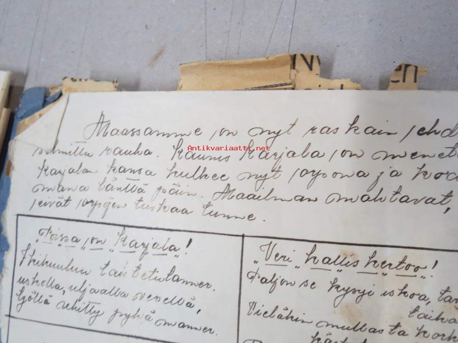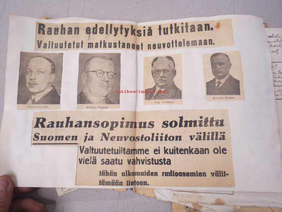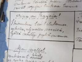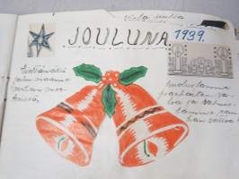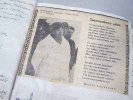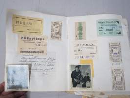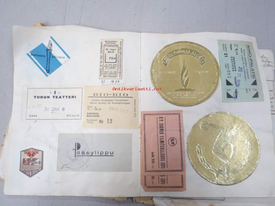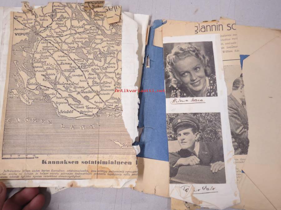 Koulutytön / nuoren neidin leikevihko / "päiväkirja", johon liimattu pääsylippuja ym, paljon Talvisodan ajan asiaa, tekijä mahdollisesti kotoisin Mellilästä? Näytä