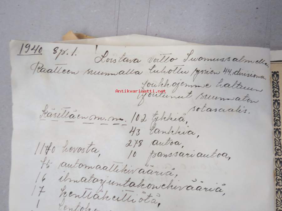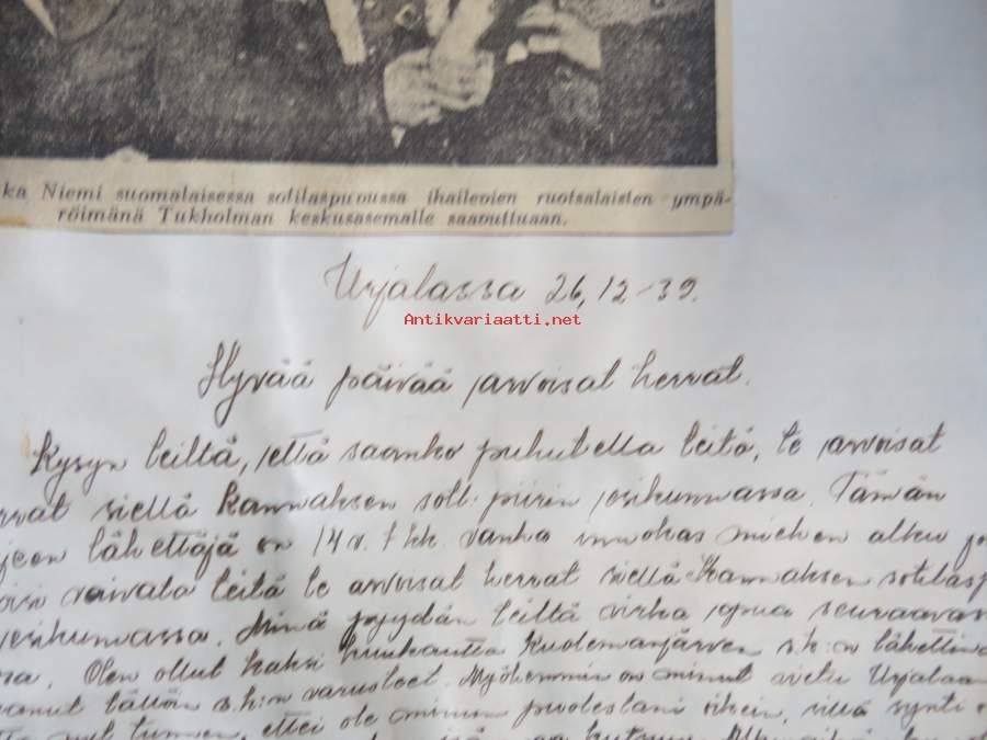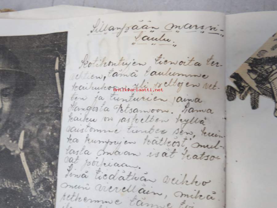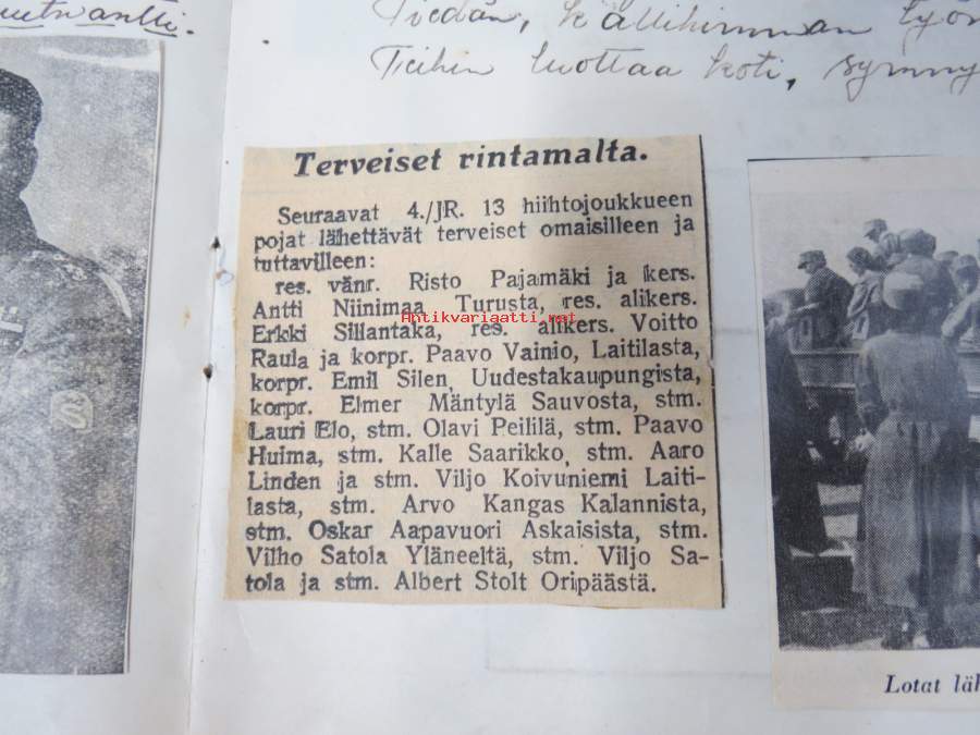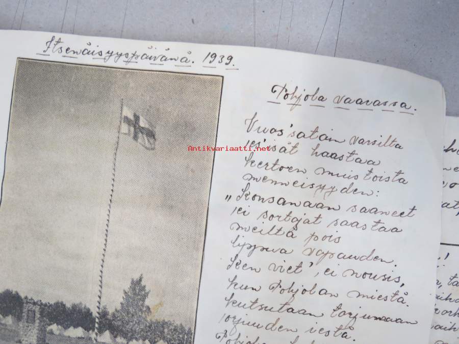 Koulutytön / nuoren neidin leikevihko / "päiväkirja", johon liimattu pääsylippuja ym, paljon Talvisodan ajan asiaa, tekijä mahdollisesti kotoisin Mellilästä?