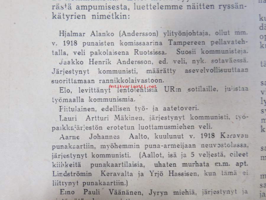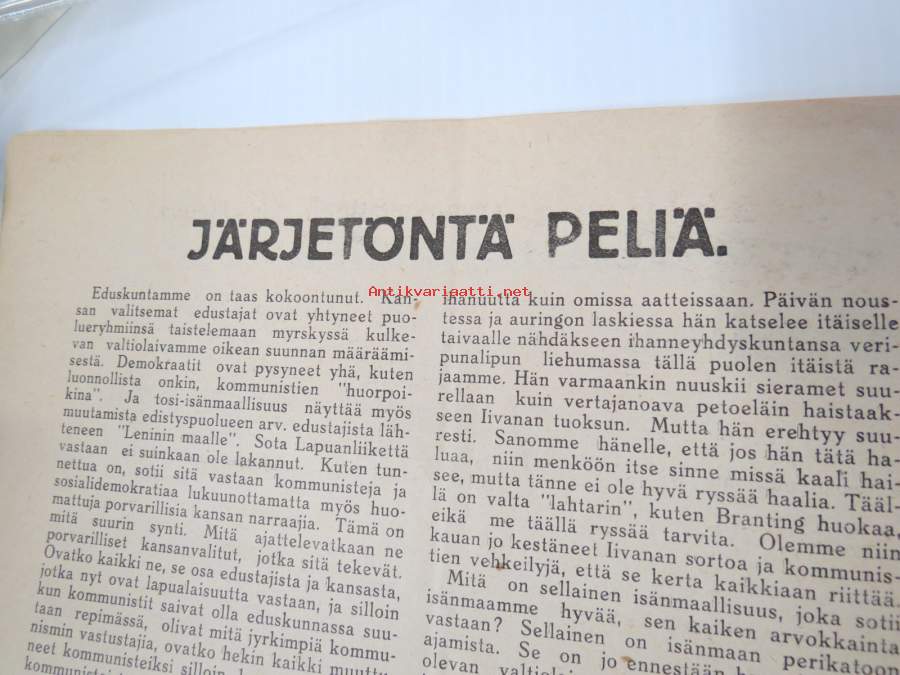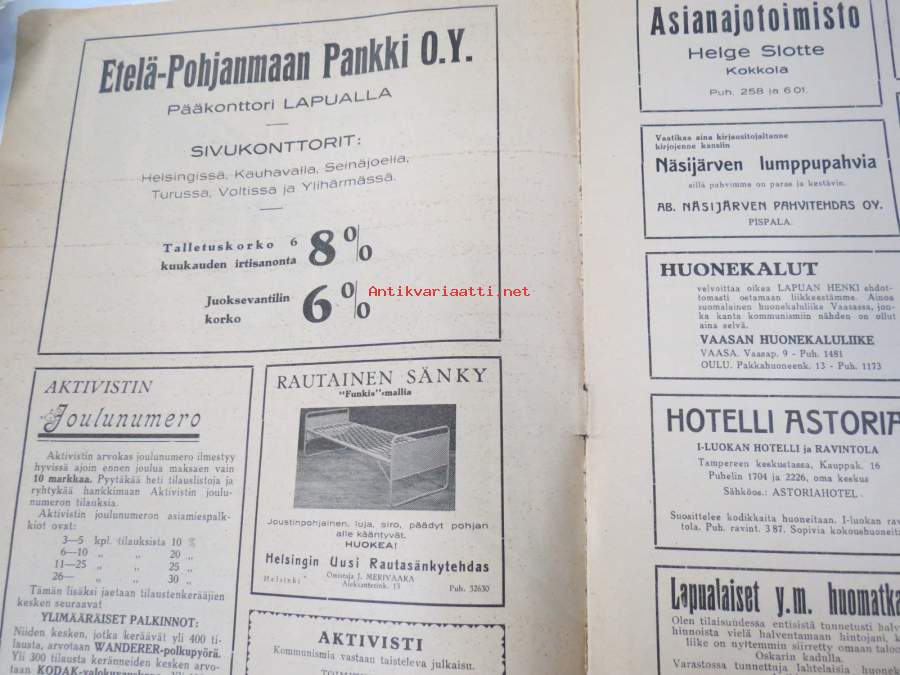 Aktivisti 1930 nr 7 - Lapuanliikkeen äänenkannattaja, Herra Jalander, Suomen Ammattijärjestö - Kommunistien vahva linnoitus, Itävaltalaisia Lapualla, Leskisen puukko Näytä