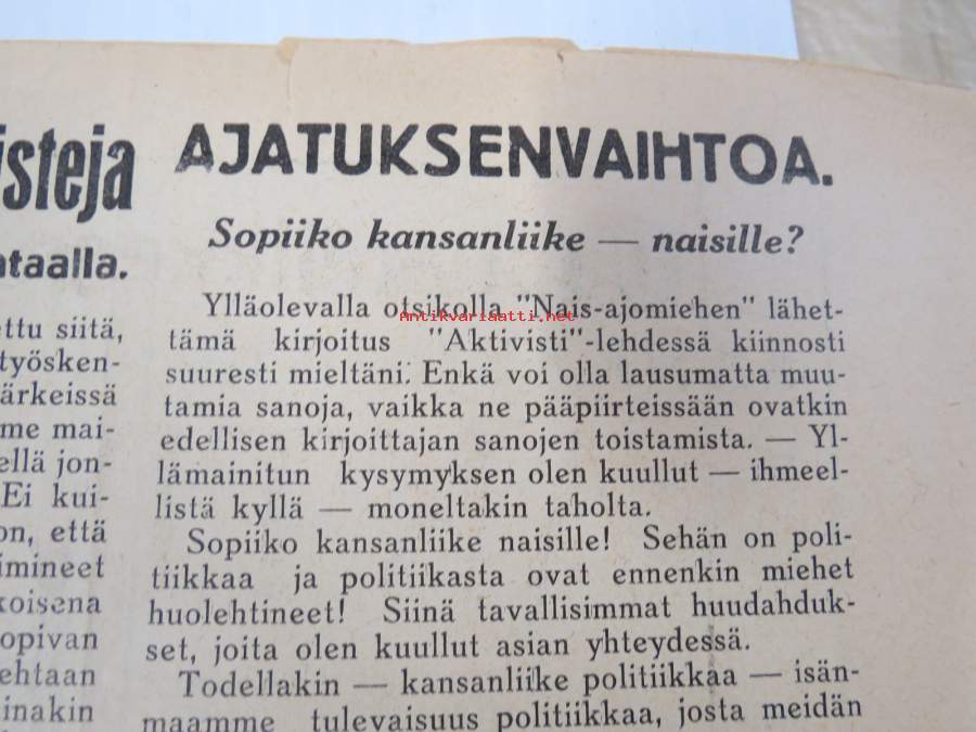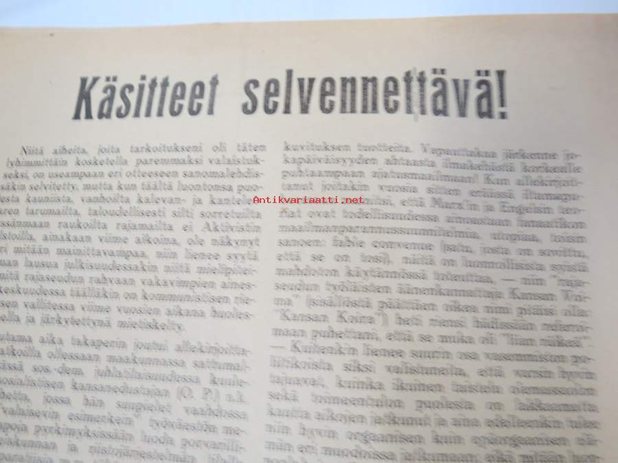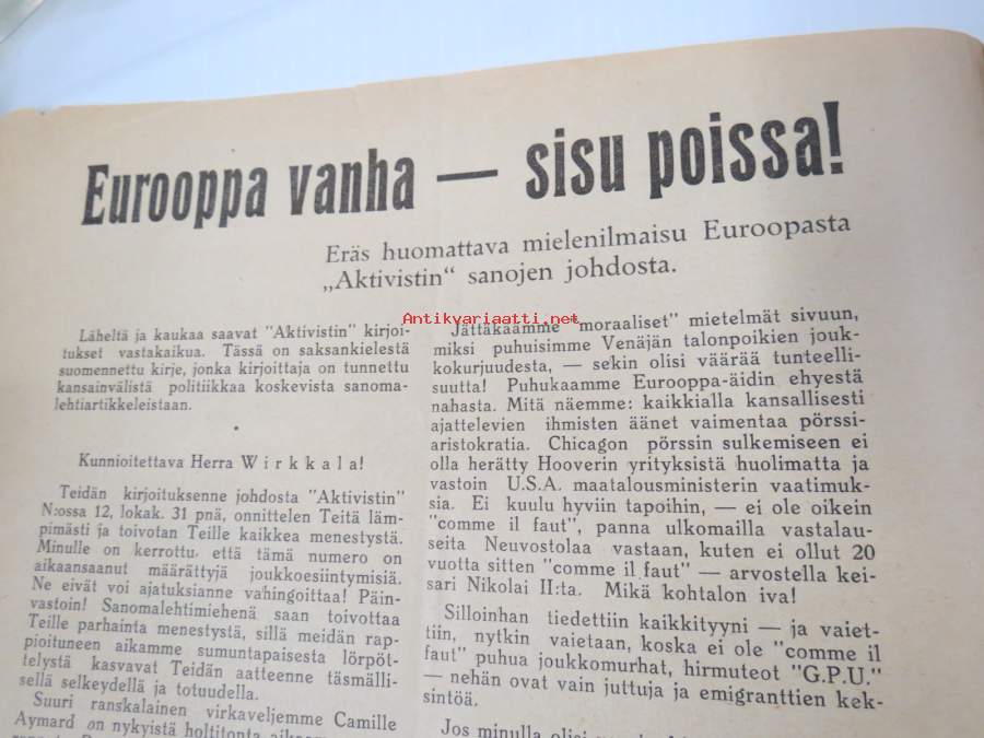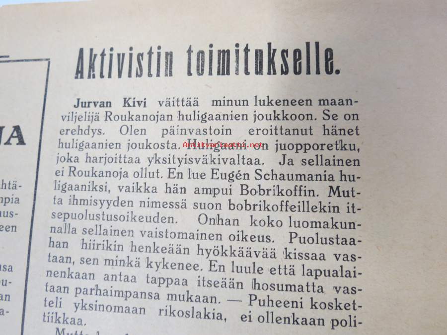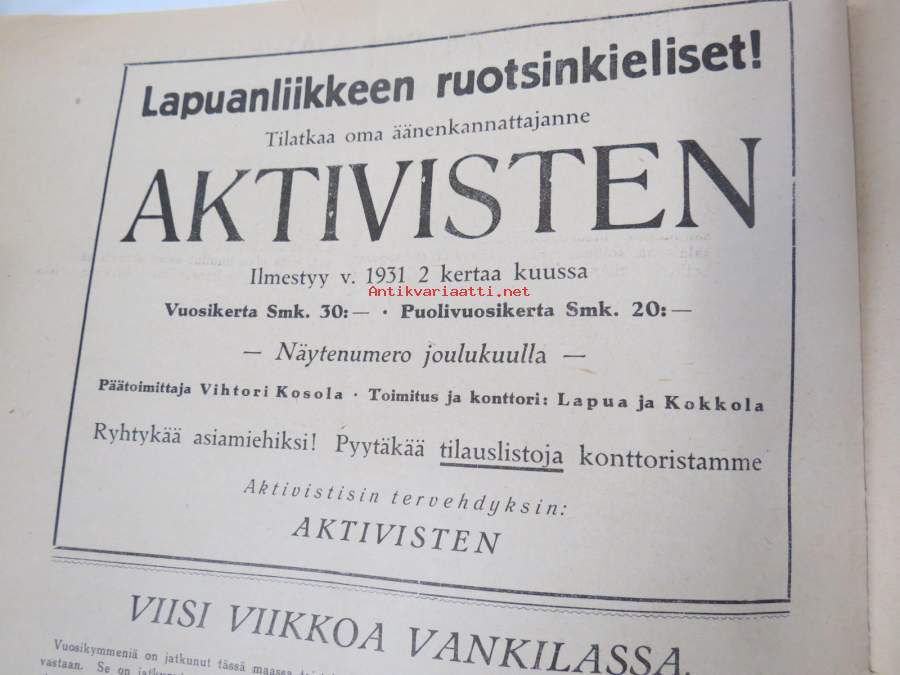 Aktivisti 1930 nr 9 - Lapuanliikkeen äänenkannattaja, Mikä mies on Vihtori Kosola - Suomalainen talonpoika Vihtori Kosola -artikkeli, Siltasaaren puusuutarit, ym. Näytä