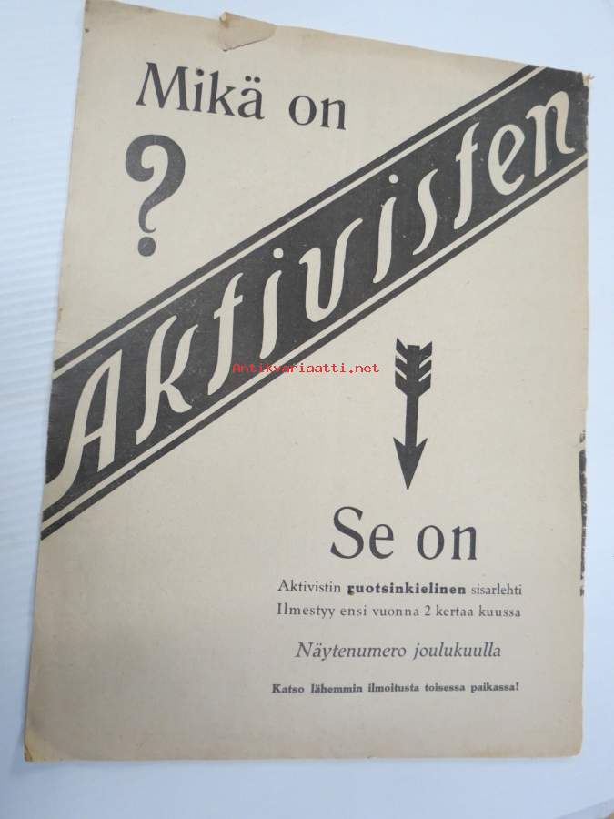Aktivisti 1930 nr 13 - Lapuanliikkeen äänenkannattaja, Paavo Markkula vapaaksi Forssassa, On korpi noussut, Karjalan aktivisti opettaja J.A. Salo, Herää Suomi Näytä