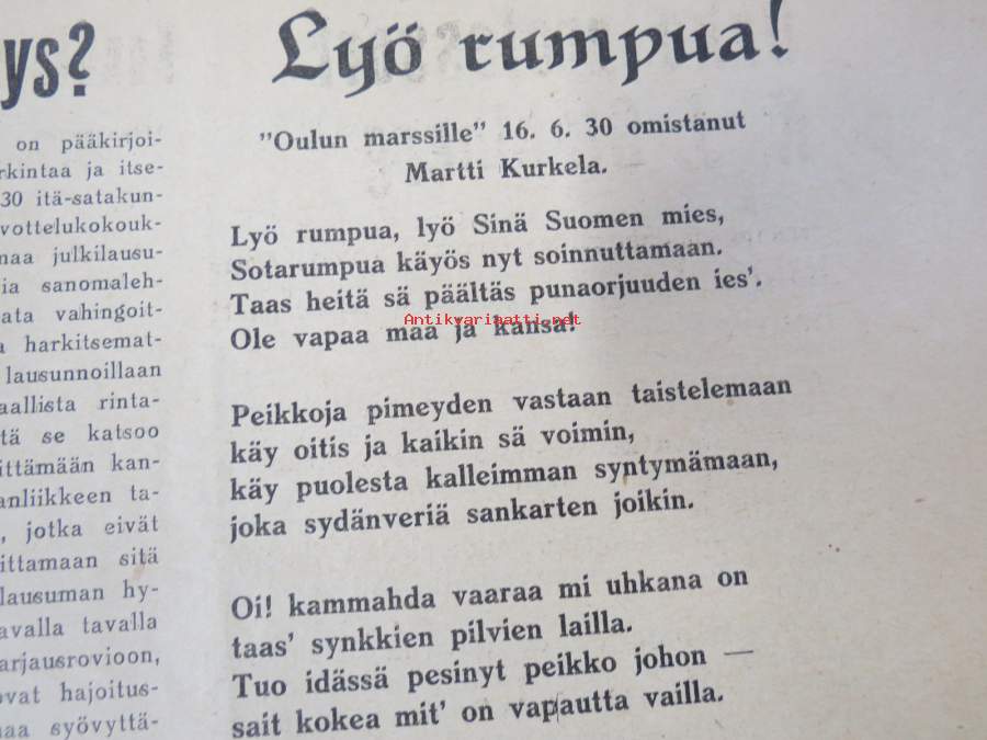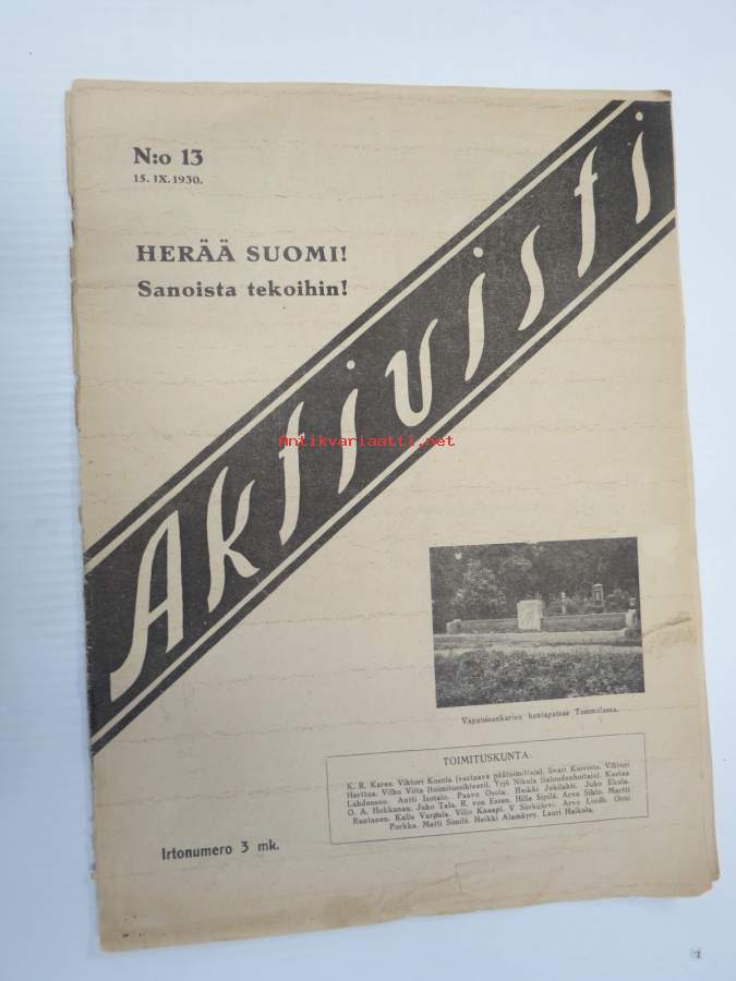 Aktivisti 1930 nr 13 - Lapuanliikkeen äänenkannattaja, Paavo Markkula vapaaksi Forssassa, On korpi noussut, Karjalan aktivisti opettaja J.A. Salo, Herää Suomi Näytä
