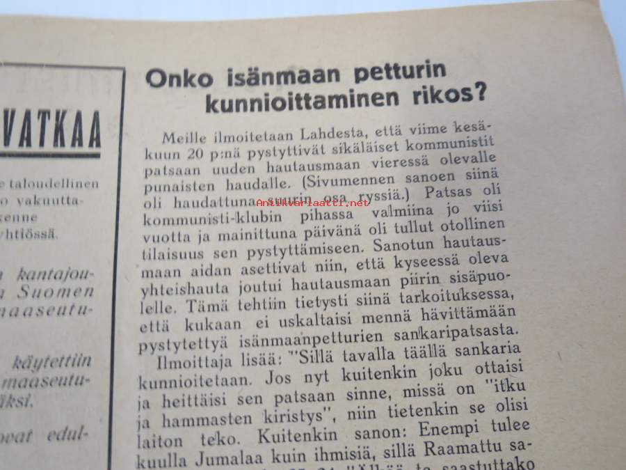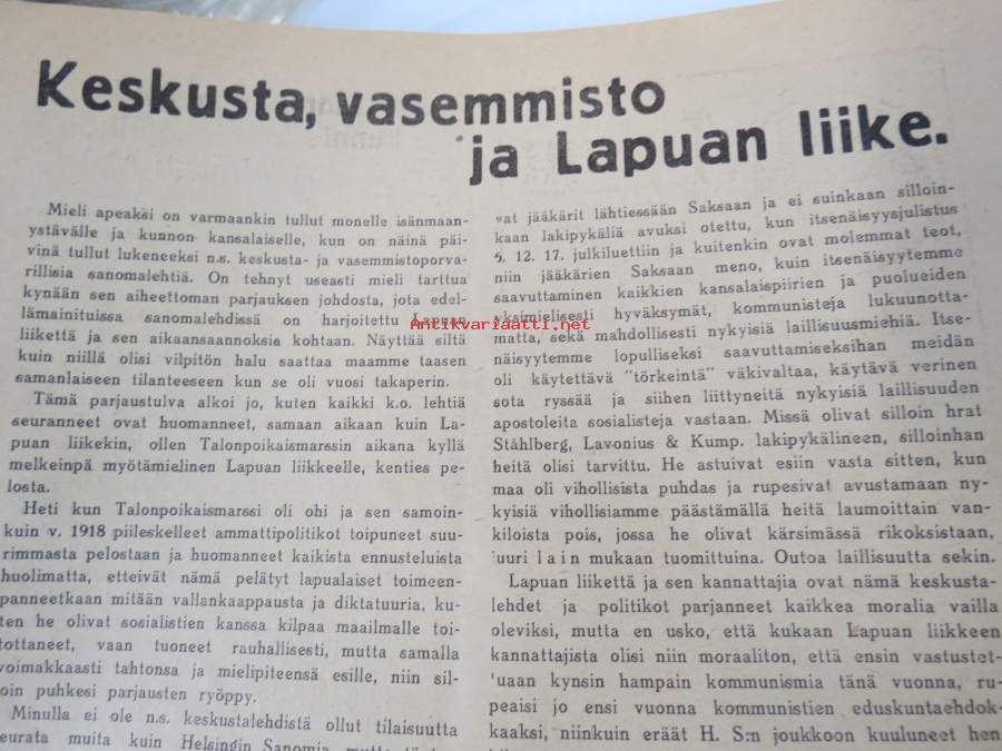 Aktivisti 1930 nr 7 - Lapuanliikkeen äänenkannattaja, Herra Jalander, Suomen Ammattijärjestö - Kommunistien vahva linnoitus, Itävaltalaisia Lapualla, Leskisen puukko Näytä