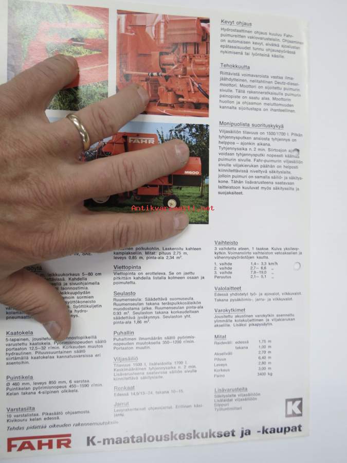 Fahr M 600 leikkuupuimuri -myyntiesite