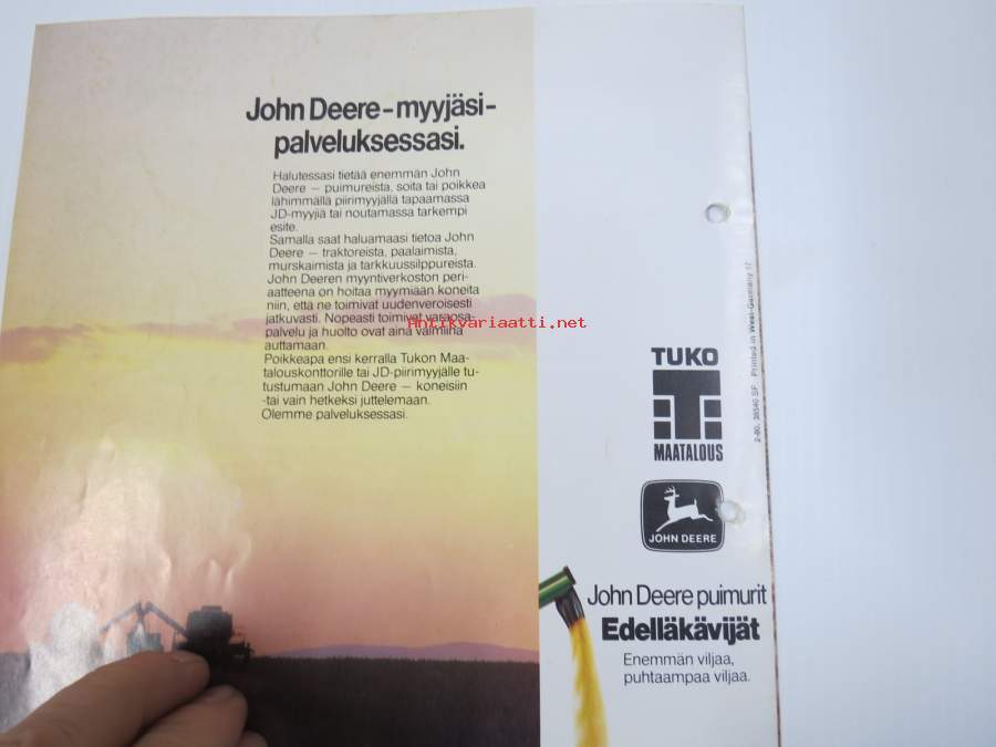 John Deere 1040 traktori -myyntiesite / sales brochure