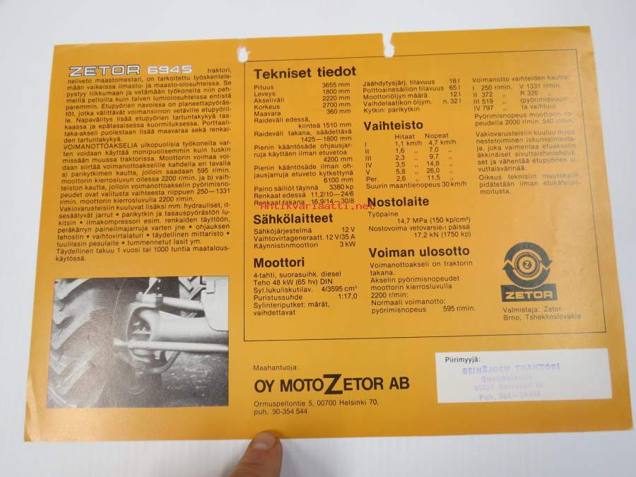 Zetor 6945 traktori -myyntiesite / sales brochure