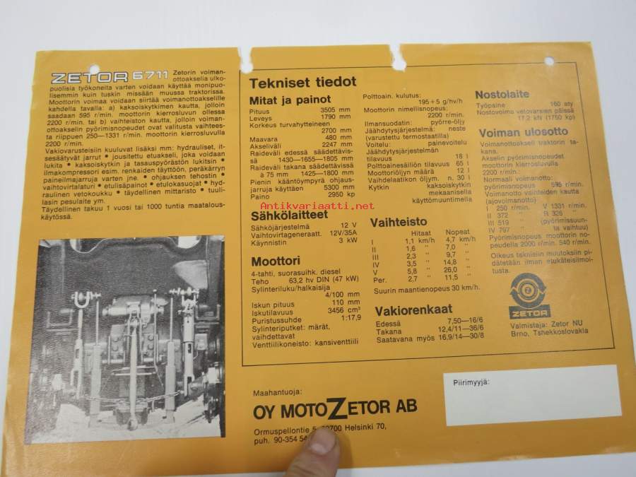 Zetor 6711 traktori -myyntiesite / sales brochure
