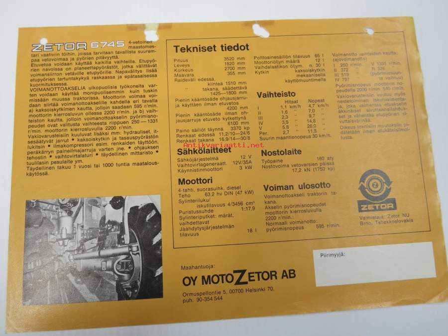 Zetor 6745 traktori -myyntiesite / sales brochure