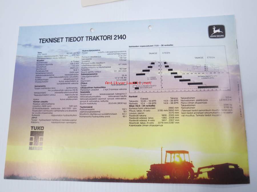 John Deere 2140 traktori -myyntiesite / sales brochure