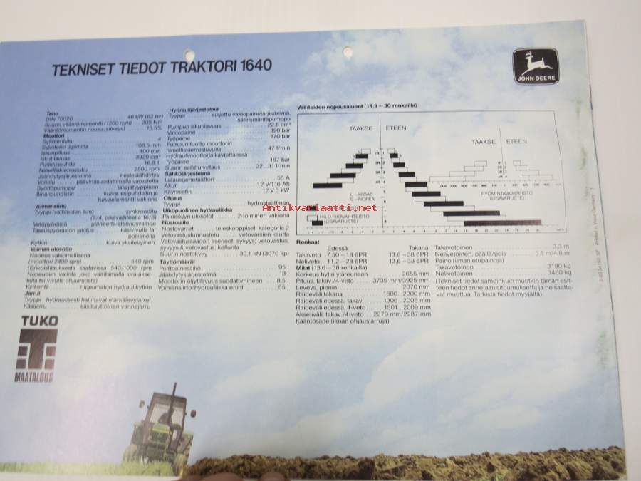 John Deere 1640 traktori -myyntiesite / sales brochure