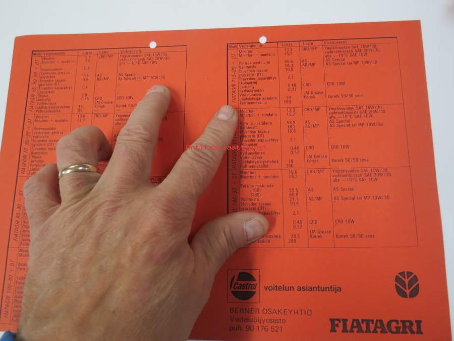Fiatagri traktori Castrol voiteluainesuositus -myyntiesite