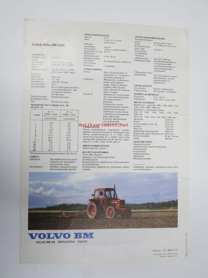 Volvo BM 2204 traktori -myyntiesite