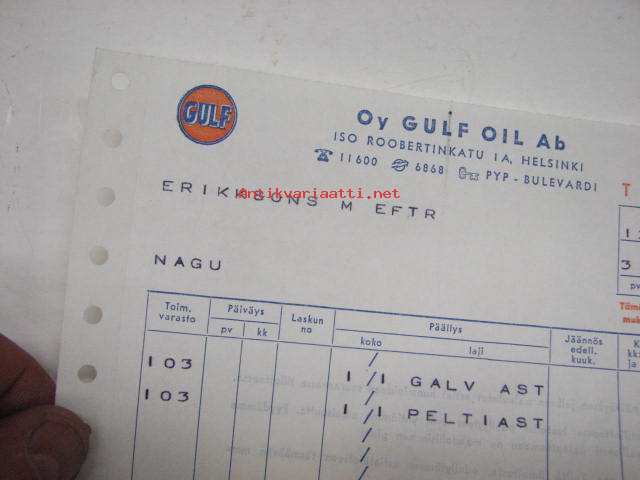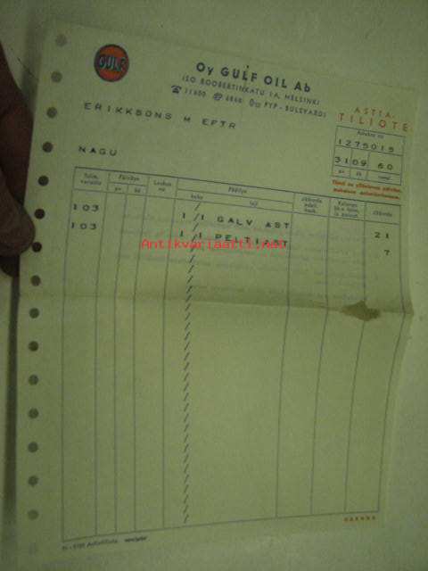 Oy Gulf Oil Ab -astiatiliote 31.9.1960