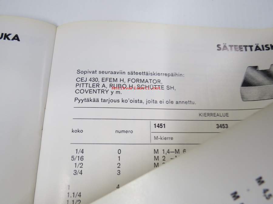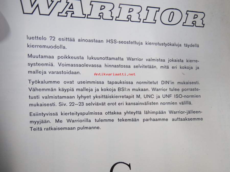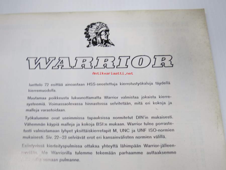 Warrior kierteytystyökalut - HSS-seostetut kierretystyökalut täydellä kierremuodolla -tuoteluettelo