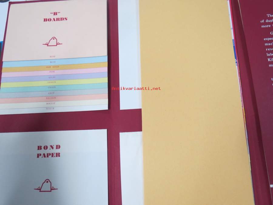 Kirjapainotarvikkeiden, -koneiden yms. esitteitä ja luetteloita isohko erä kerralla, 20 cm nippu