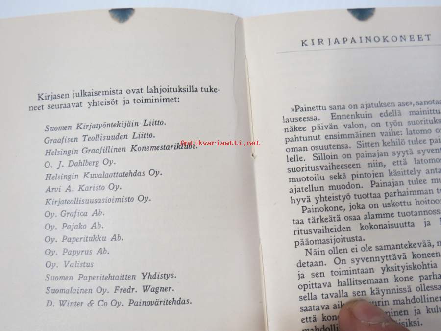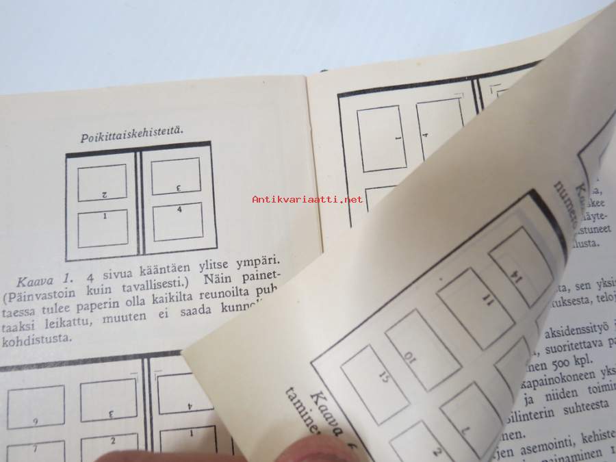 Kirjapainotarvikkeiden, -koneiden yms. esitteitä ja luetteloita isohko erä kerralla, 20 cm nippu