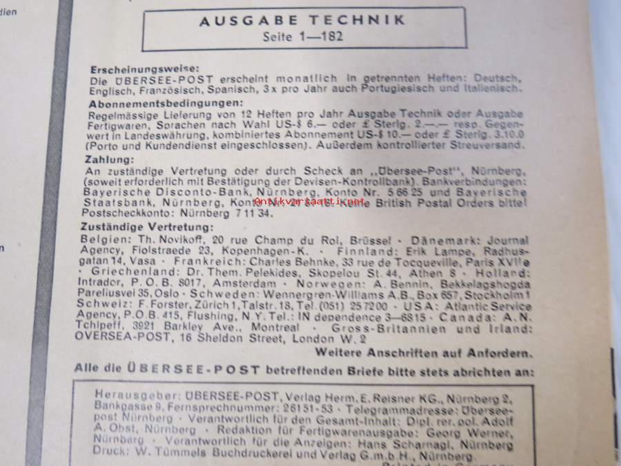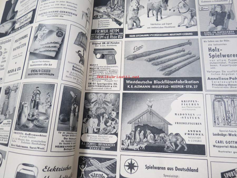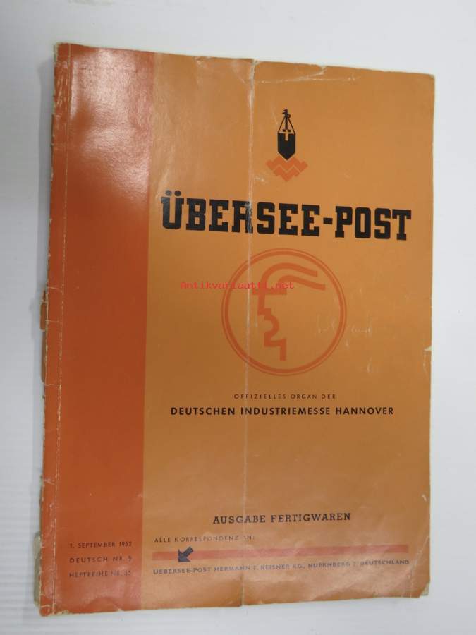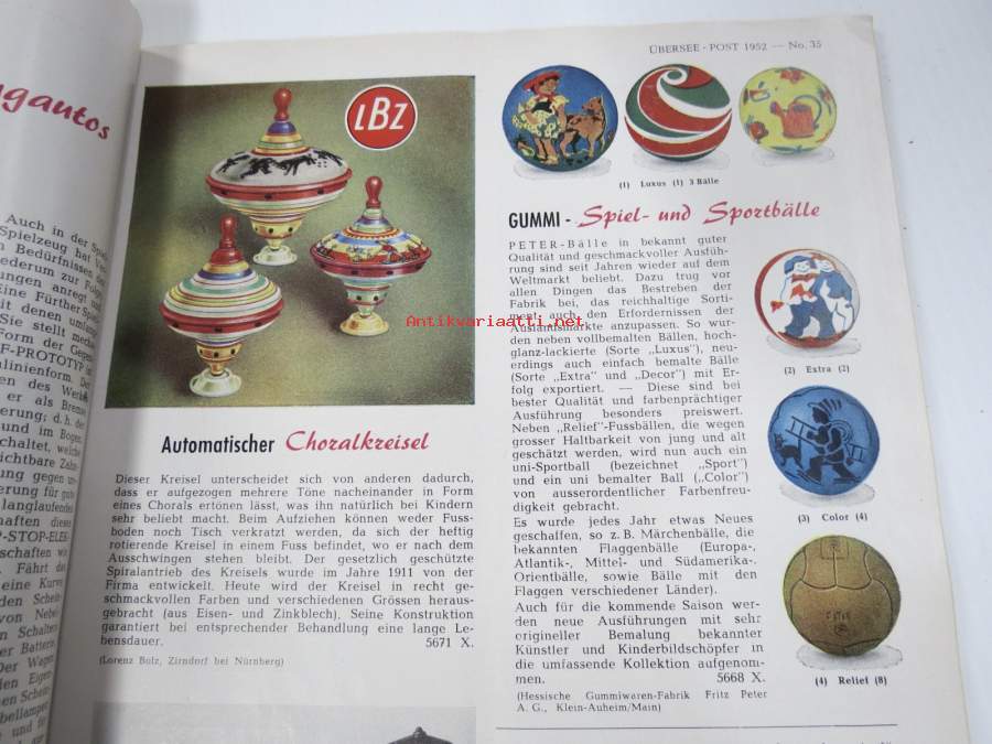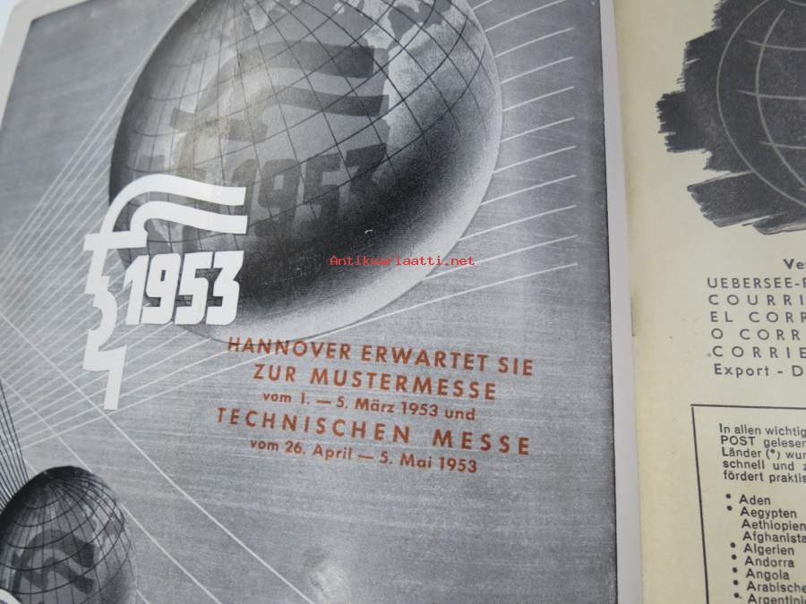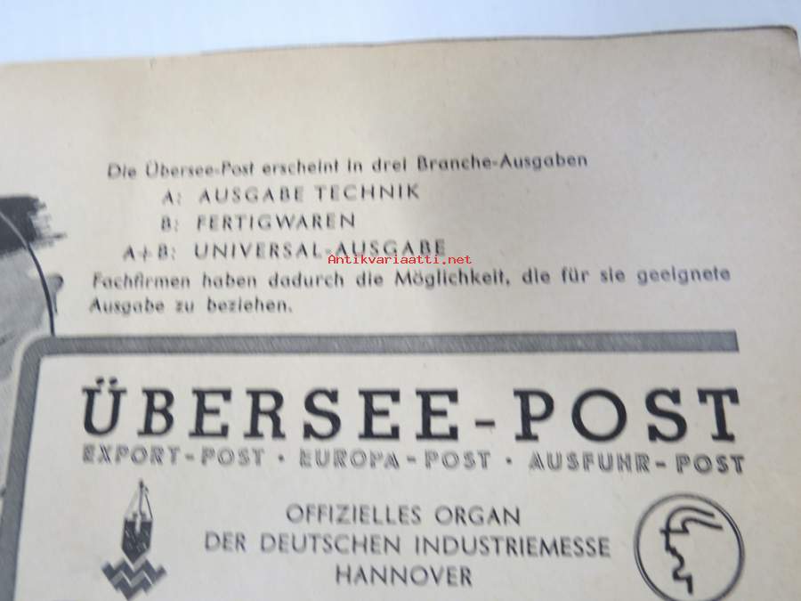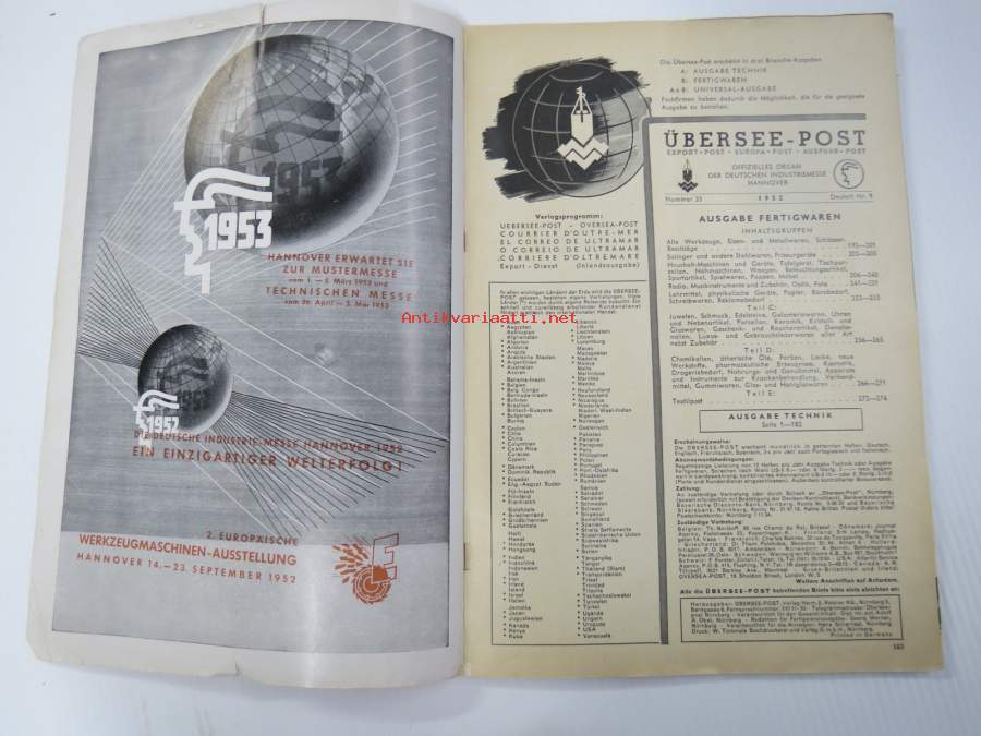 Übersee-Post - Deutschen Industriemesse Hannover 1952 -luettelojulkaisu -paljon kuluttajatuotteita mm. leluja, radioita, koriste-esineitä ym. hyvin kuvitettu Näytä