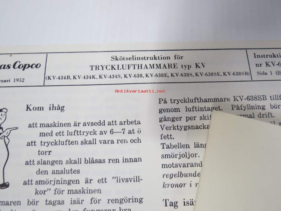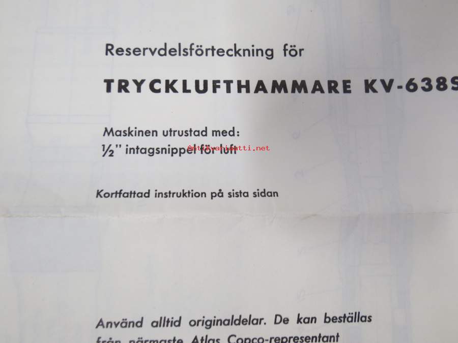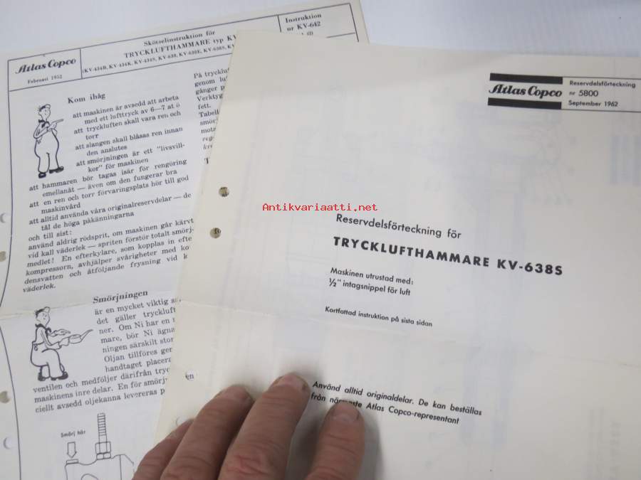 Atlas-Copco Trycklufthammare typ KV Skötselinstruktion - Reservdelsförteckning -huolto-ohje