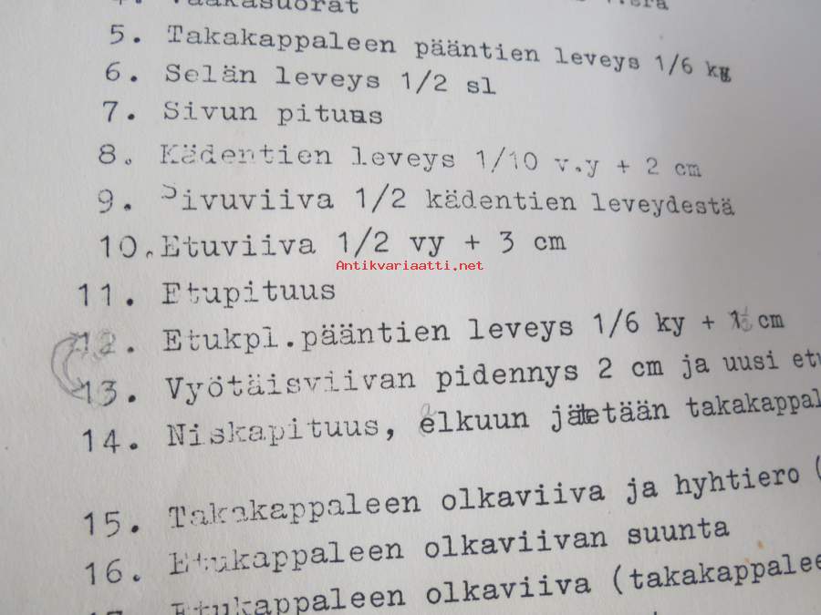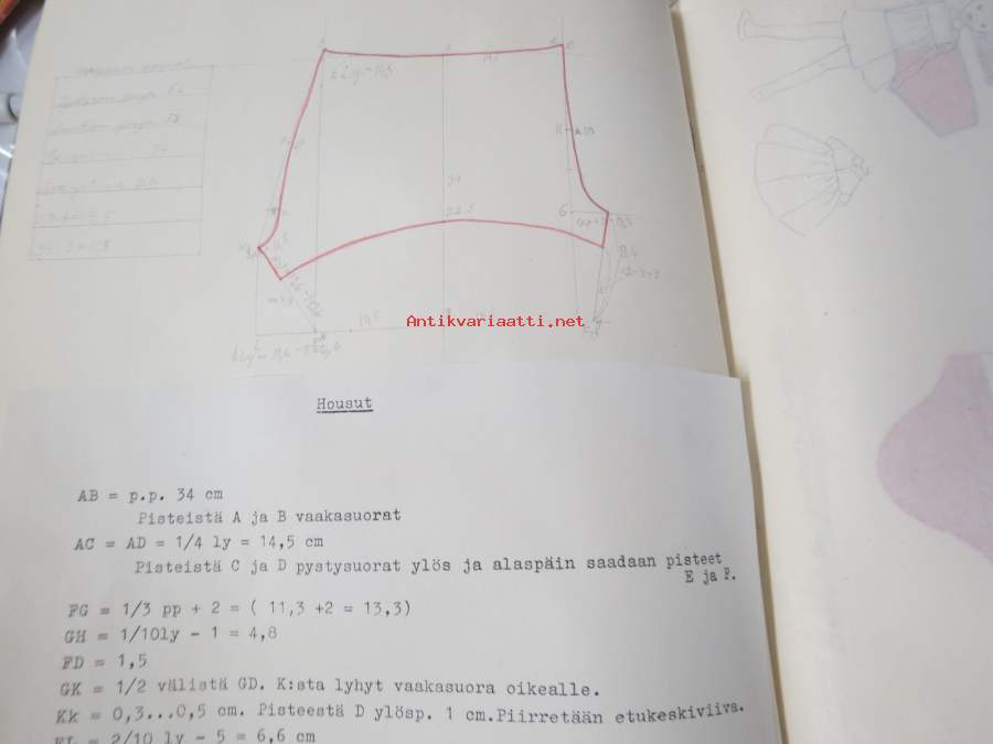 Kaavaoppivihko - jonkinoppilaitoksen käsityönopetuksen tai vastaavan "työvihko", jossa iso määrä erilaisten vaatteiden kaavoja yms.