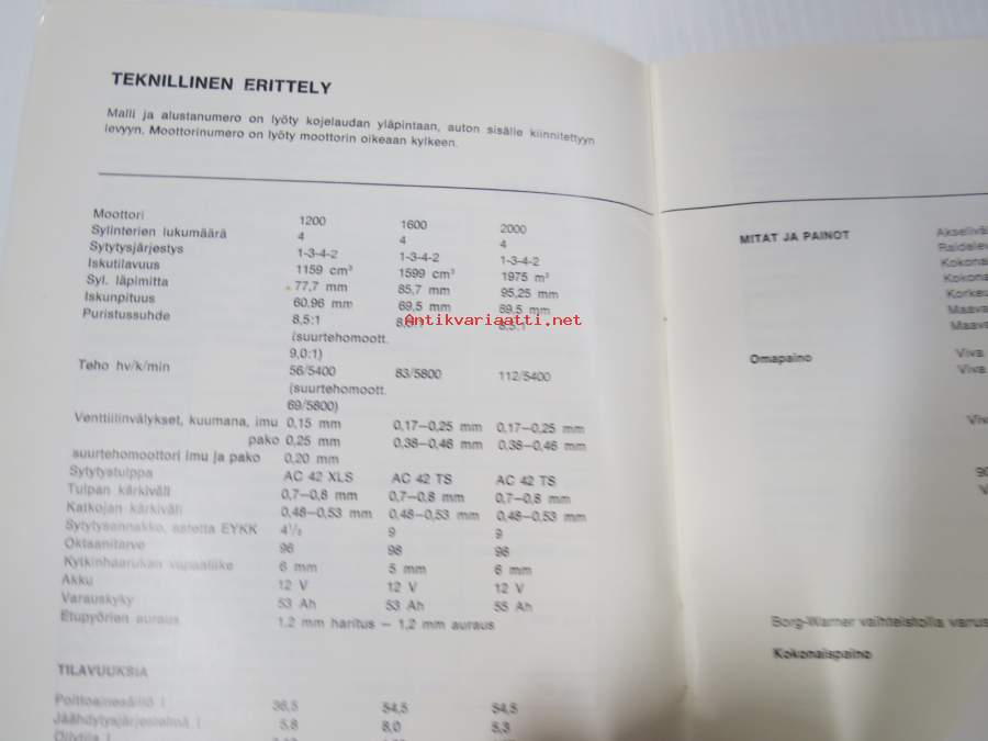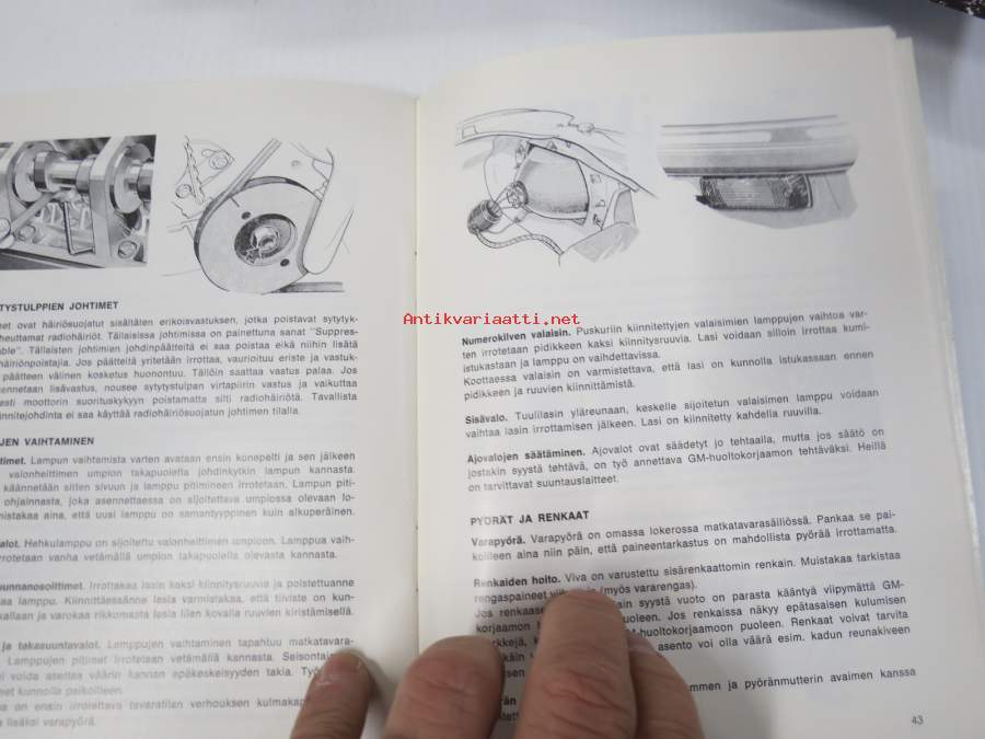 15 x 21 cm omistajan käsikirja, sisältää sähkökaavion.
