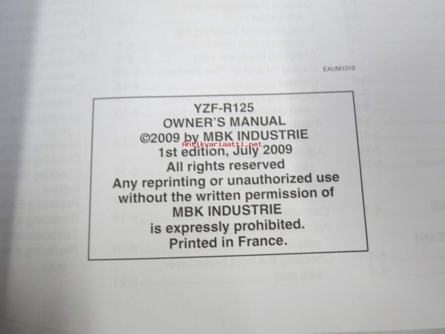 Yamaha YZF-R125 Owner´s manual -moottoripyörä, käyttöohjekirja englanniksi
