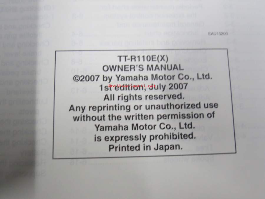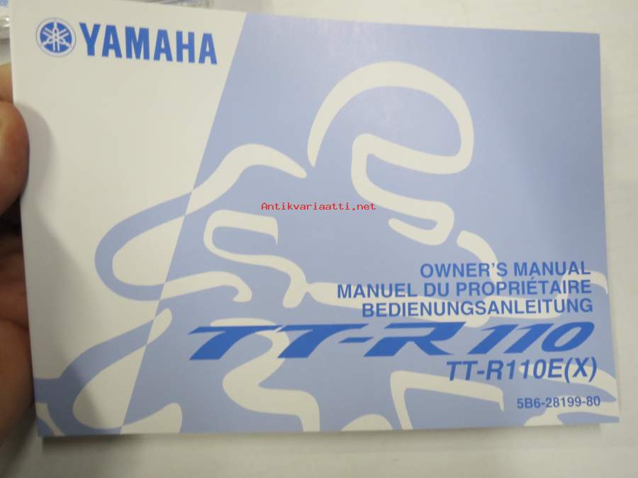 Yamaha TT-R110E(X) Owner´s manual -moottoripyörä, käyttöohjekirja englanniksi, ranskaksi ja saksaksi